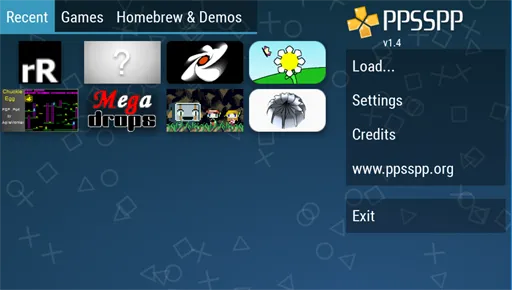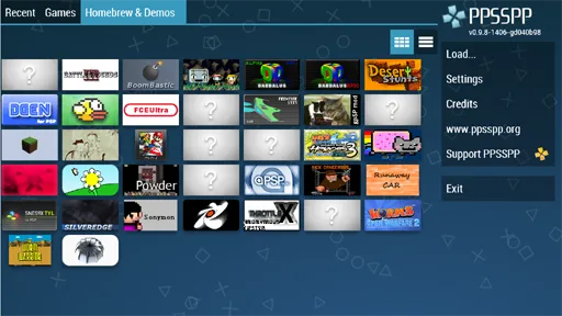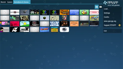تأتي الواجهة الرئيسية في تطبيق محاكي PPSSPP PSP Emulator الذهبي بتصميم عملي وبسيط يسهل التنقل داخله حتى للمستخدمين الجدد. في أعلى الشاشة ستجد شريطًا منظمًا يضم أقسام Games وRecent وHomebrew & Demos لتسهيل الوصول إلى مكتبة الألعاب أو آخر العناوين التي تم تشغيلها. في منتصف الواجهة تظهر الألعاب التي تم التعرف عليها تلقائيًا داخل الذاكرة، مصحوبة بصور أغلفة واضحة وأسماء مرتبة تسهّل اختيار اللعبة المطلوبة بسرعة. أما في الجزء السفلي فتظهر أيقونة Settings وخيارات إضافية مرتبة بأزرار واضحة وسريعة الاستجابة. يمكن التمرير بين الألعاب بسلاسة تامة، والضغط على أي عنوان لتشغيله فورًا دون خطوات إضافية، مما يجعل تطبيق PPSSPP Gold مهكر للاندرويد خيارًا مثاليًا لتجربة تشغيل ألعاب PSP بجودة عالية وتنظيم احترافي مريح للعين.
